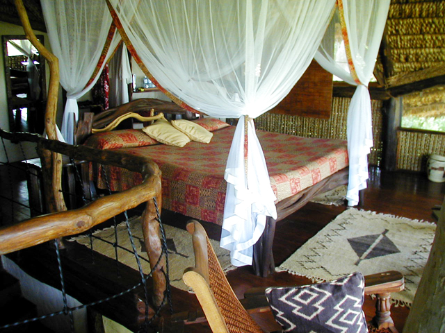 部屋に壁がないので部屋にいながら森林浴。鳥のさえずりで目が覚めます。